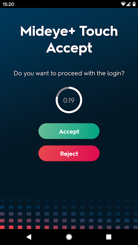Mideye +は、Mideyeの認証サービスで使用され、VPNやその他の2要素保護サービスへの安全なログインを実現します。 Touch Acceptを使用するように構成されたサービスの場合、ログインはアプリで直接承認できます。電話がデータトラフィックに到達できない場合、ワンタイムパスワード(OTP)がSMSを介して送信され、アプリで解読されて表示されます。電話機のカバレッジが完全ではない場合、スクリーンコードに手動で署名することでOTPを生成できます。