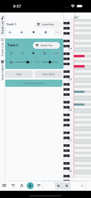 - オーディオからMIDIへ:録音した曲やリフ(WAV)を編集可能なMIDIに変換し、微調整や構築が可能です。