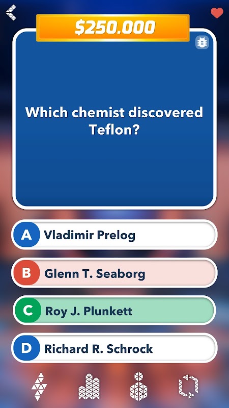 With each new level, you progress to more difficult questions. The more you answer, the more in game money you will receive, there are fifteen levels in total. The last questions are particularly hard, it's a real challenge to find a correct answer and you need to be really smart and clever.