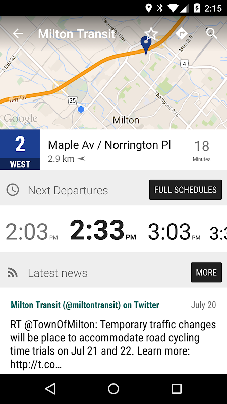 MonTransit のミルトン トランジット バス。スケジュール。ニュース。
