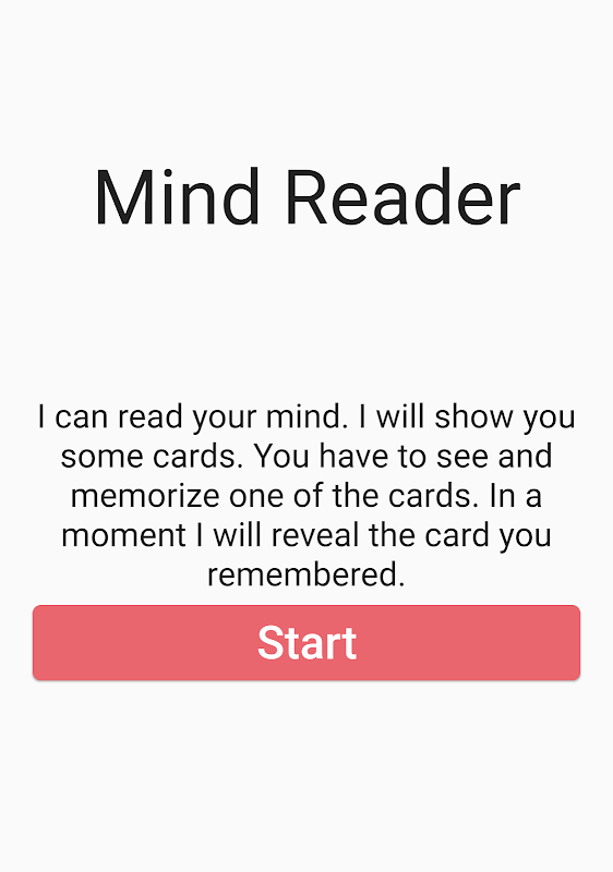 デッキからトランプの束はあなたに表示されます。あなたはデッキが素早くを通じてリブ付きれているように、あなたの心の中のカードを選択する必要があります。現時点では、このアプリは魔法のようにあなたの心の中のカードを公開します!