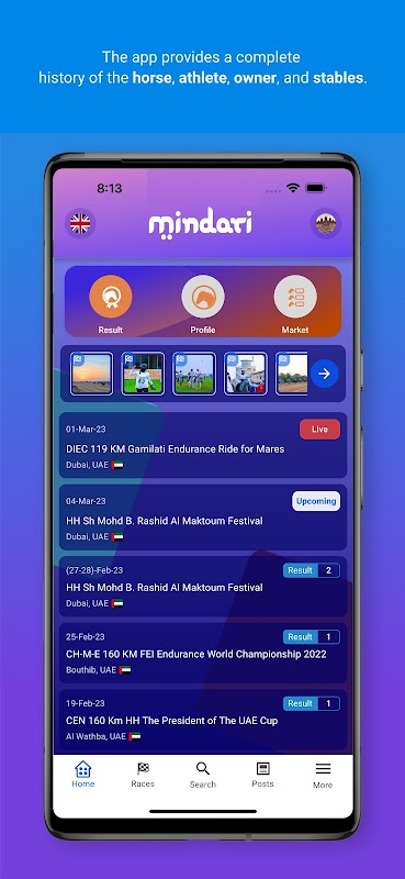 乗馬スポーツは、馬をスポーツの主要部分として使用するスポーツです。 Mindariは、世界中の乗馬耐久スポーツ愛好家に新しいオンライン体験を提供するアプリです。