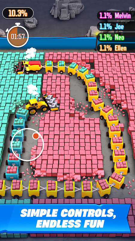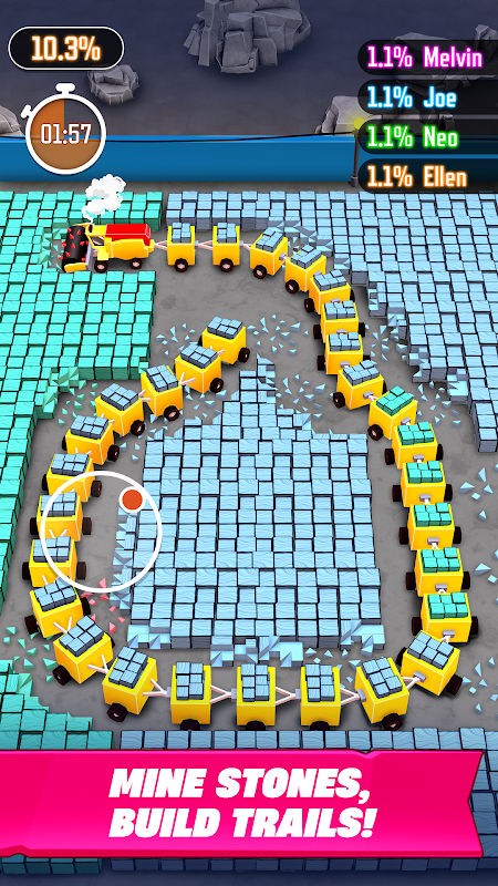 - 農業シミュレーターのような、シンプルで蛇のような石材採掘ゲーム