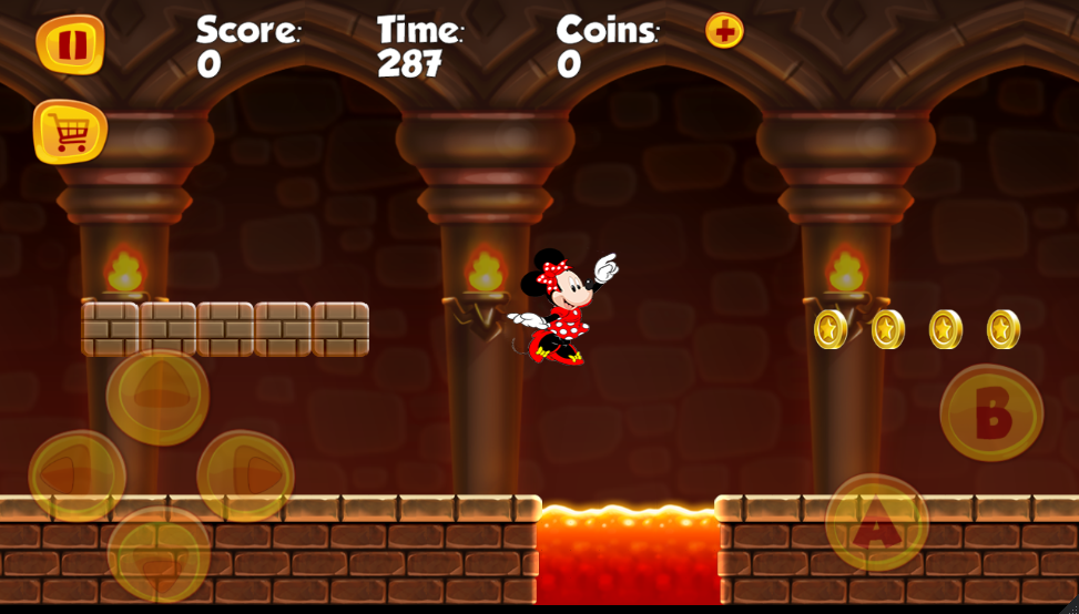 This Jungle run mickey the mouse and minnie Game is a Free adventure Game the concept try to help mickey,in collecting coins and jump from