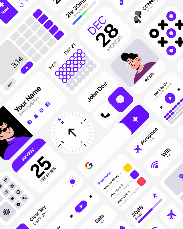 厳選されたウィジェットを豊富に取り揃え、力強くスタートを切りました。今後も定期的なアップデートでさらに充実させていく予定です。品質、洗練されたタイポグラフィ、そして目的を意識したデザインに重点を置いています。このウィジェットパックをご利用いただくことで、常に新鮮でモダンな環境を維持できます。