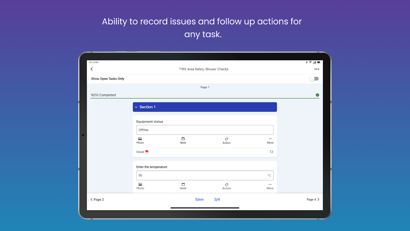 • フォームの表示、割り当て、実行 - 開いている検査のリストを表示し、自己割り当てフォームを表示し、モバイル デバイスで直接実行することで、検査ワークフローをシームレスに管理します。