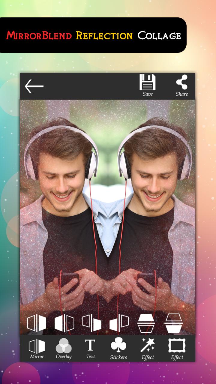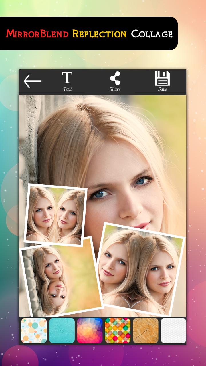 This application has mirror collage also, so that you can create mirror photo collages as well. Mirror images will be created, while main image will be in the background.