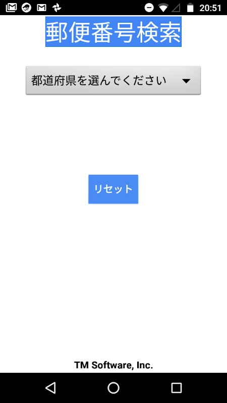 * アプリを起動します。初回起動時はデータベース初期化のために都道府県メニュー表示に少し時間がかかります。2回目以降は即座に都道府県メニューを表示します。