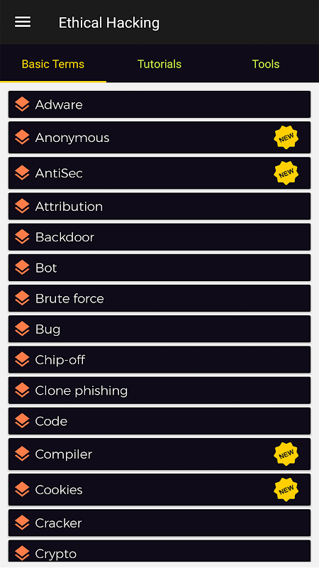 This App provides a huge collection of Ethical Hacking Tools, Tutorials and Computer Shortcut Command Keys and Network Utilities...