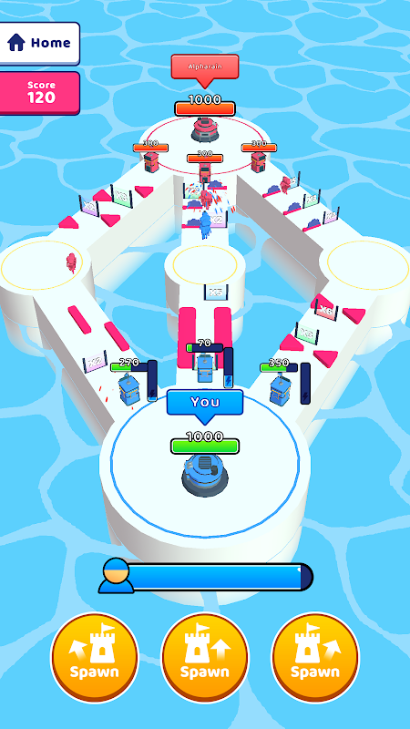 マナを使用して、3つのタワーのいずれかから戦略的に軍隊を配置します。タワーバーがいっぱいになると、ヒーローがスポーンします。