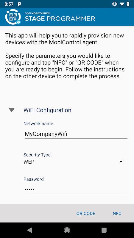 MobiControlステージプログラマーは、管理者のためのアウトオブボックスのプロビジョニングソリューションです。これは、NFCの上に単一の「バンプ」とモバイル機器の迅速な設定と展開を可能にします。ご希望の設定オプションを指定して、あなたは、シングルタップでプロビジョニングする準備が整いました。ステージプログラマーはMobiControlエージェントのインストールを開始し、空気を介してデバイスを設定します。あなたは簡単に提供大規模な展開をすることができますし、あなたのチームはすぐに仕事を得ることができることを確認してください。