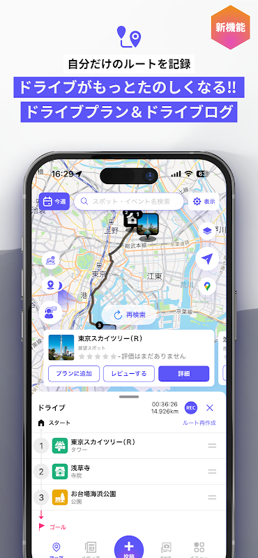 ●オリジナルのドライブプランを作成、ドライブログで思い出を共有できる!