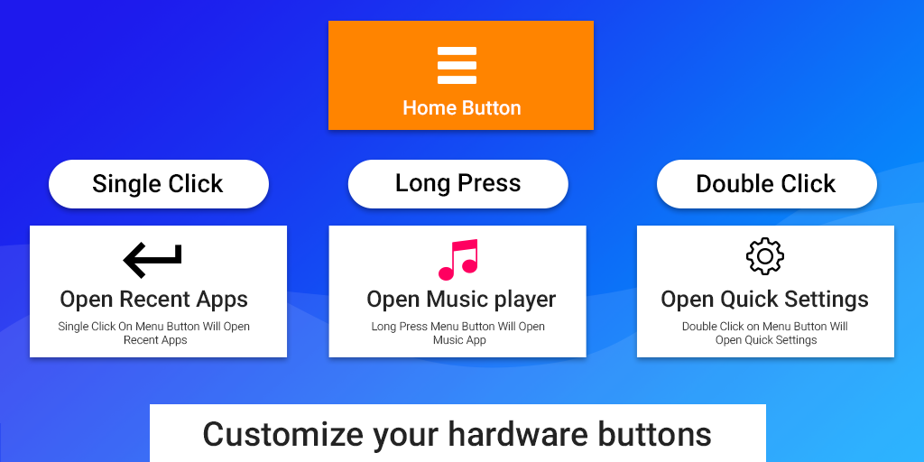 If you want to change the action of your mobile buttons, you can do it with this application. This app will help you set your own customized action on click on any physical button in your mobile.