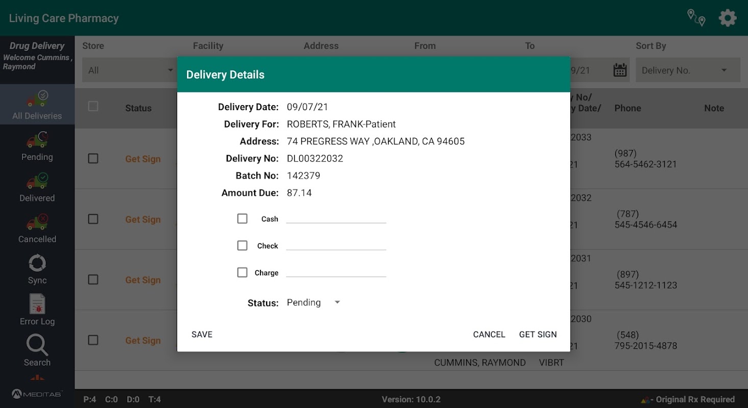 このアプリケーションは、IPS、インテリジェント薬局ソフトウェアを使用している薬局の従業員を対象としています。このアプリケーションは、薬局ソフトウェアからドラッグデリバリー情報をダウンロードし、薬局の従業員はこれらのドラッグパッケージを配信し、詳細を編集し、これらの配信をオフラインで処理できます。すべてを保存した後、インターネットに再び接続するたびに、更新されたデータをサーバーにアップロードして、すべての変更を同期させることができます。機能の詳細は以下のとおりです。