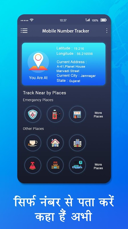 Mobile Number Location Tracker helps you to track any phone number from India. You can search for any mobile number to find the contact name and the location. The city area, state, country and service operator of the phone number will be displayed and the geographic location will be shown on the maps.