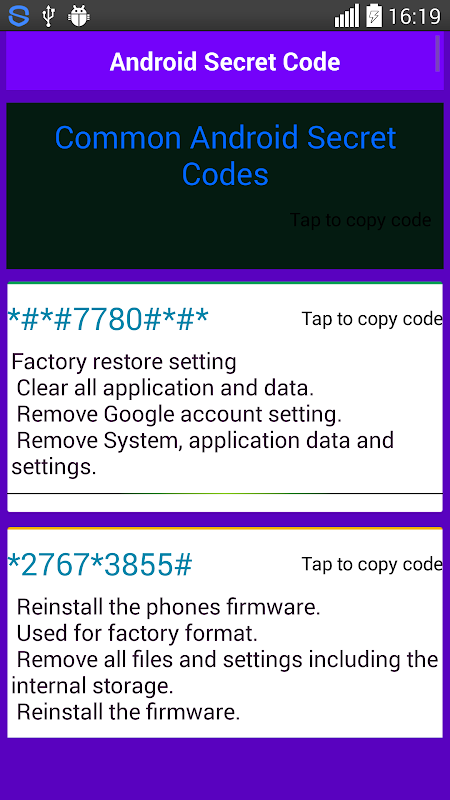 Note: We cannot guaranty that these codes will work on all Android mobiles.