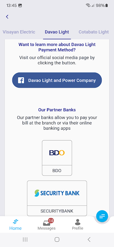 VECO、Davao Light、Cotabato Light、Subic、Lima Enerzone アカウントを管理します。