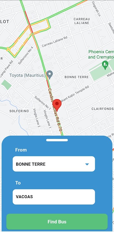 さらに、MoBis は、ユーザーが地図上でモーリシャス内の任意の場所を選択できる便利なオプションを提供します。次に、アプリはその場所に最も近いバス停を表示し、乗客の移動ニーズに適した CNT バスを見つけるプロセスを容易にします。