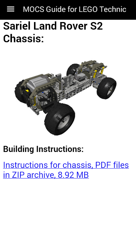 Explore new MOCS for LEGO® Technic top builders and download free instructions all packed in one light application with a simple and easy user interface.