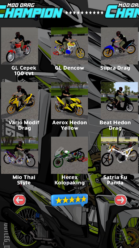 低抵抗バイクのドラッグバイクMODは、Sanandreasドラッグバイクシミュレーター搭載のタイドラッグバイクMOD、Asian Drag Racing ChampionのBussidドラッグバイクシミュレーター、BusidのタイドラッグバイクMOD、そしてBussid Ninja H2R MODでも利用可能です。そのため、BussidドラッグバイクMODのワイルドなブラップスタイルのインドネシアドラッグがお好きなら、ストロボライトとアクセサリーが揃ったベトナムドラッグバイクMODは、ストロボライトと様々なプロドラッグレースMODのバリエーションを備えたドラッグレースMODで見つかるでしょう。インドネシアシミュレーターのリアルなドラッグバイクレーススタイルを再現したBussidドラッグバイクMODで利用できるほか、点滅するVarioドラッグMODを備えたこのドラッグレースMODは、インドのカラーリングMODを搭載したBussid ThailandドラッグカーMODでも利用可能です。