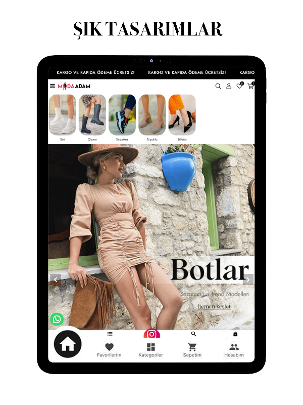 2007 年に設立された Moda Adam は、婦人靴を扱っています。製品範囲には、ブーツ、ブーツ、ハイヒール、カジュアル シューズ、スニーカー、サンダル、スリッパが含まれます。ソーシャル メディアで始まった私たちの旅は、ソーシャル メディアに加えて、カルシュヤカ アタケントの実店舗とオンライン ショッピング サイトで今日も続いています。