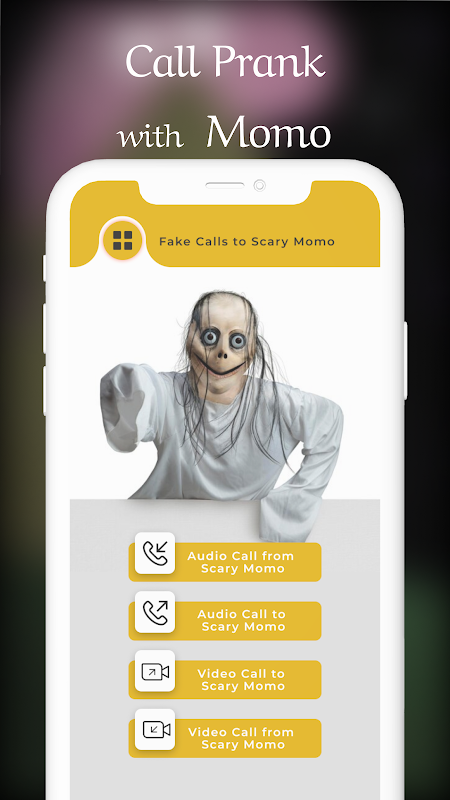 Fake calls including audio and video calls and make prank fun to enjoy some scary moments in this Momo video call & audio prank call. In a fake call with the scary Momo, the horror character Momo would really scare your friends and it gives some interesting facts to you to enjoy.