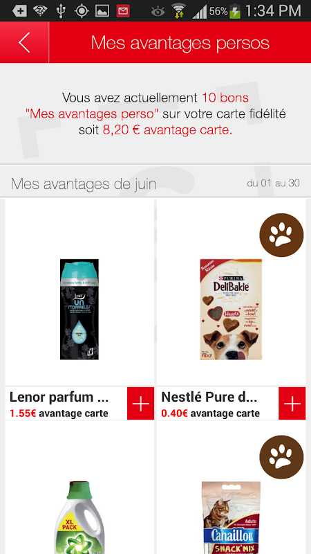 - Votre suivi de fidélité dans votre poche : retrouvez votre solde d’euros disponibles à dépenser dans votre magasin Intermarché.
