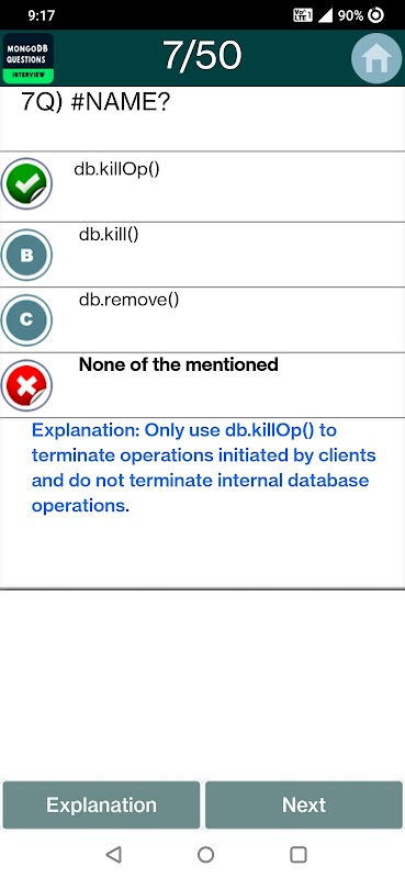 MongoDBクイズ無料アプリはあなたのMongoDB試験の準備に役立ちます。 このMongoDBアプリケーションでは、MongoDB試験の成功のために2000以上の多肢選択問題を提供しています。
