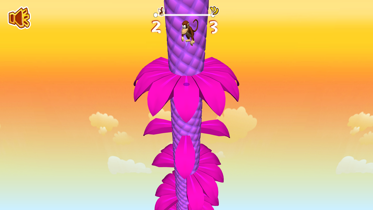 Help the monkey to get to his bananas! In 'Monkey Bounce' you need to swipe the screen to the right or left in order to fall through the palm leafs.