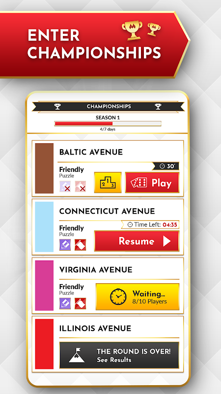 価値のある対戦相手に認めてもらいましょう!毎日サイコロを振ってボードに沿って移動し、「報酬乗数」、トークン、アバターのロックを解除し、レベルを向上させましょう!