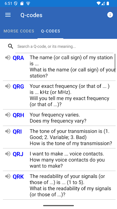 • この翻訳アプリはアマチュア無線Qコードにも対応しています。モールス信号を入力し、その中にQコードが含まれている場合、そのQコードの意味が括弧内に自動的に表示されます。この機能は、設定でオフにすることができます。