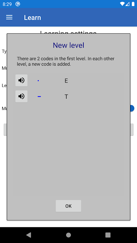 • レベルの選択は完全にあなた次第です。すでにいくつかの基本を知っている場合は、最初から始める必要はありません。次のレベルに進むのもあなた次第です。現在のレベルのすべての文字を簡単に翻訳できると確信したら、ボタンをタップして次のレベルに進みます。