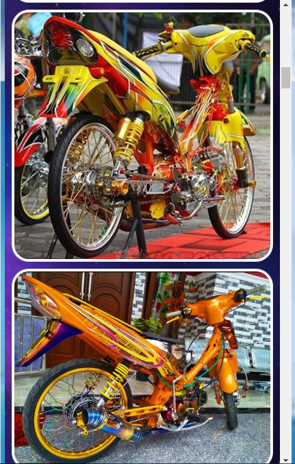 あなたはここで様々なコンテストのオートバイの変更のアイデアについて学ぶことができます。 このアプリケーションは、以下のメニューがあります。
