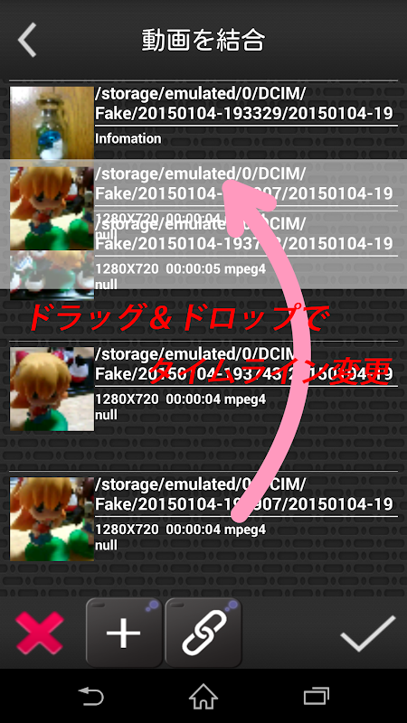 ・動画結合(タイムラインをドラッグ&ドロップで編集可能)