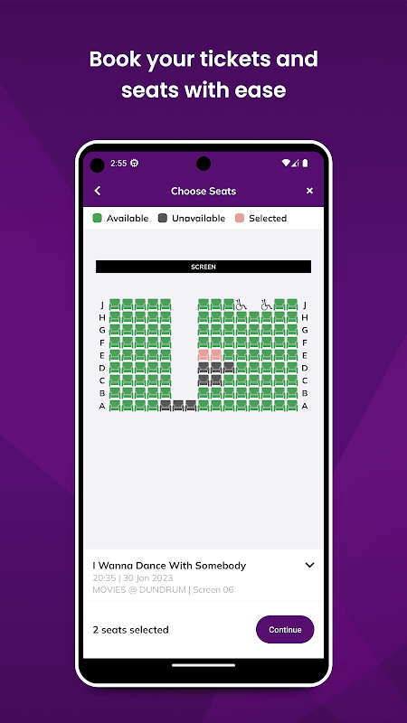 使いやすい予約システムにより、映画の時間の選択、座席の選択、エキストラの追加をすべて 1 つの簡単な注文で行うことができます。それよりも良いのは、予約が完了すると、eチケットがアプリで待っているので、映画館でチケットを受け取るために列に並ぶ必要はありません!