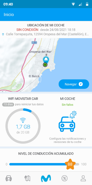 - 専用の 4G Wi-Fi: Movistar Car の GB に接続してブラウジングし、モバイル料金のデータ消費を忘れてください。