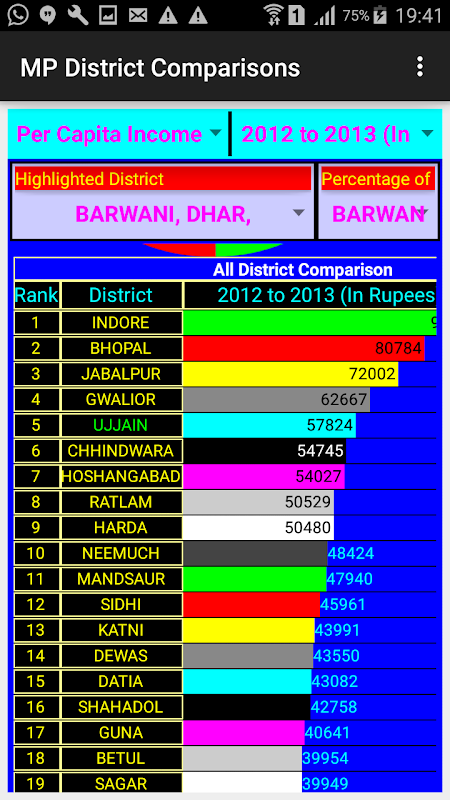 It quickly provide various information about district of Madhya Pradesh in graphical and numerical form.