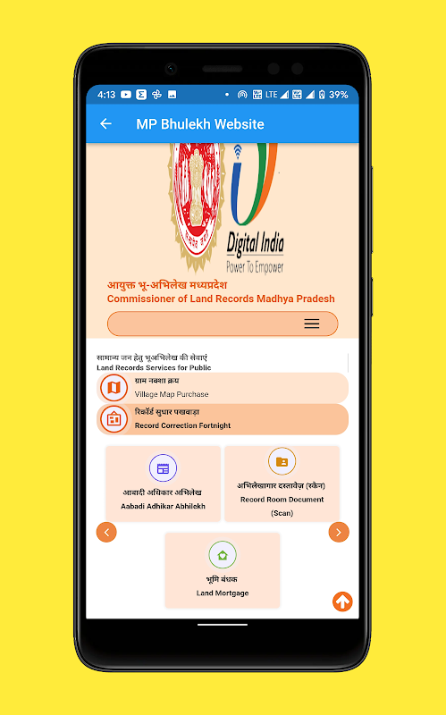 スキームに関するすべての情報は、アプリケーションで提供されます。アプリケーションは公式ではありませんが (https://mpbhulekh.gov.in/mpbhulekh.do)、このアプリケーションでは、公式 Web サイトに移動します。 MP Bhulekh (https://mpbhulekh.gov.in/mpbhulekh.do) に関するすべての情報を取得できます。