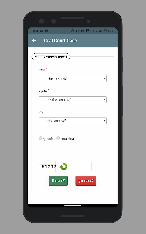 ステップ 2) Tahasil/तहसीलका चयन करें を選択