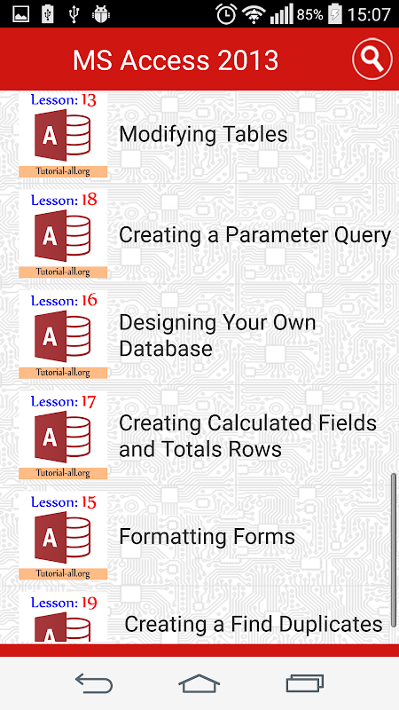 In this application, you can learn some basic and advanced features in MS Access with simple step-by-step tutorials to guide you along.