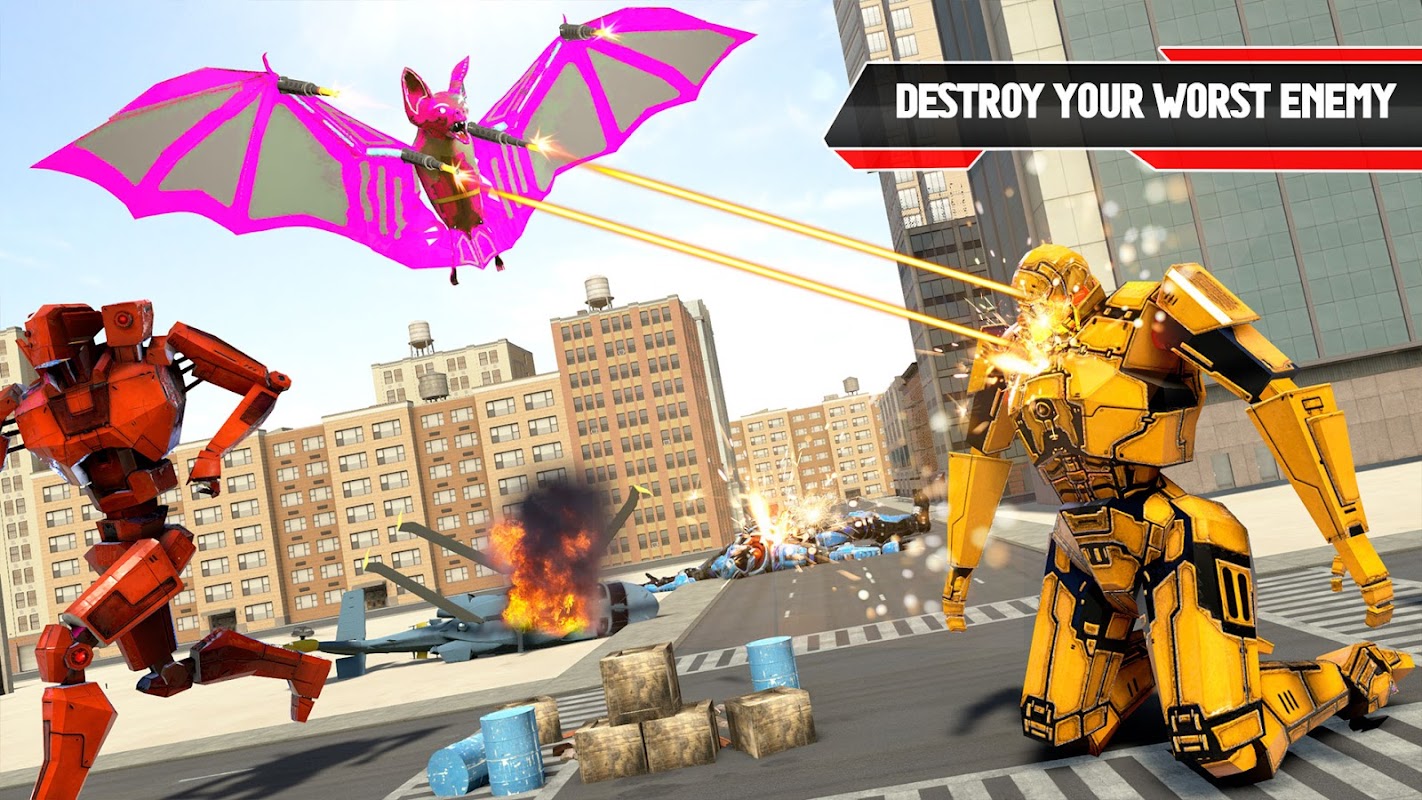 The superhero transforming robot war begins into robot bat hero grand city attack robot shooting after the alien robots invade with the mission to rule over the robotic machines. Start grand city robot fight of the future battle of robots with amazing bike transformation games to eradicate the bad robots of NY city in police bike games and police robot games. look forward to removing these monster transforming robots from machine robots in this ultimate mega robot wars 2020. let's start the shooting mission of police robot wars and enter into transforming robot wars in police robot shooting games and light bike robot war games. You want to win a super bat fight, so transform into bat hero of the mech robot warrior against the furious battle machines. Unleash your super robot powers in real robot gun war games and fighting machines to tackle the super robotic mafia in unlimited real robot wars games. Start best robot game to earn the reward from army robot hero games and unlock the strongest multi power robots to fight against mech robots and drone robots.