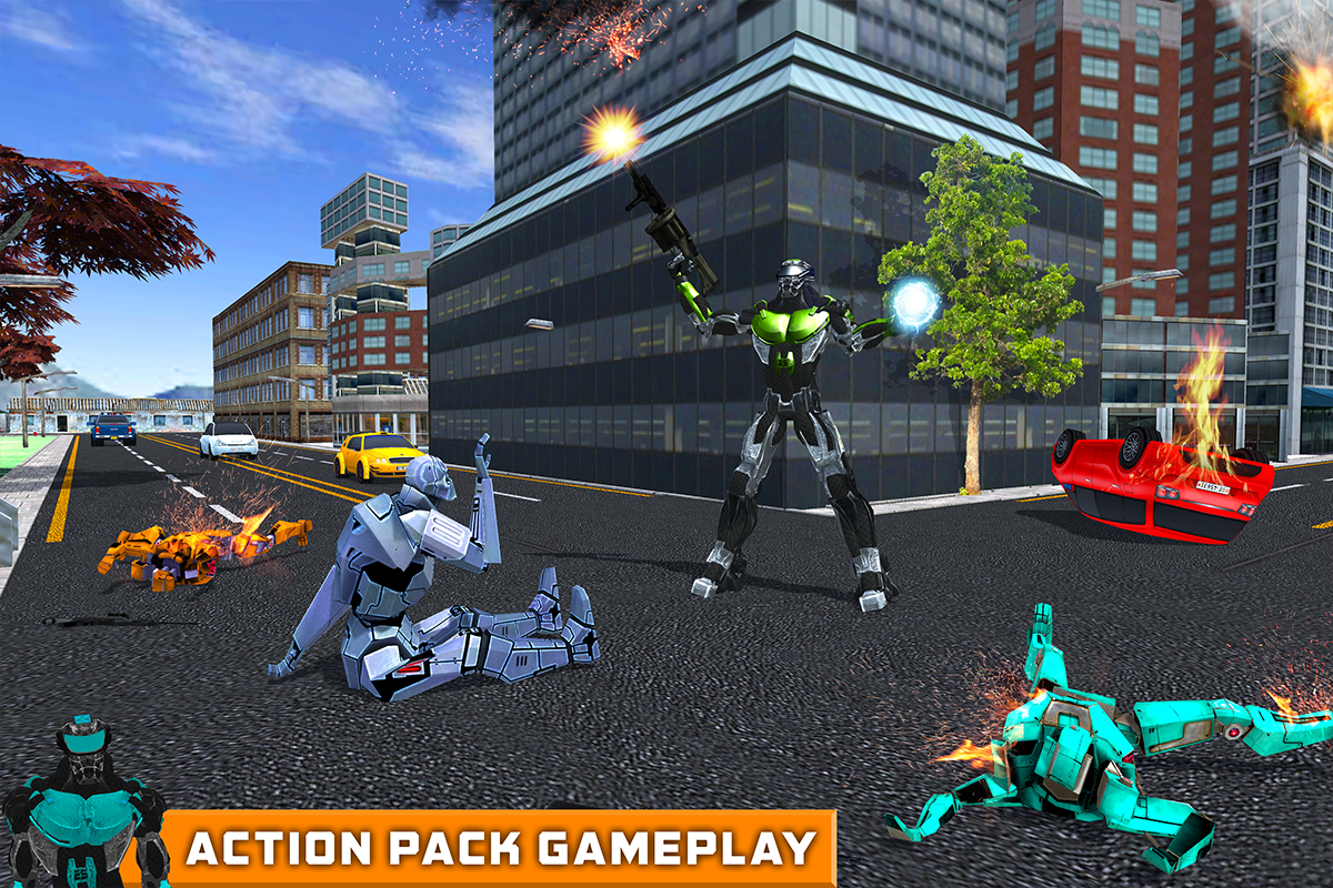 Multi Robotic Crocodile Futuristic Battle è un gioco d'azione con un gameplay interessante in cui diventi Multi Robot e combatti con pericolosi criminali futuristici nella grande città e in Deep Ocean. Iniziamo la nuova avventura di Robotic Crocodile con questo multi eroe d'azione subacquea e distruggi il tuo pericoloso nemico che è in forma di squalo robotico e di subacquei arrabbiati. Inizia il gioco, giochi solo come robot futurista e combatti con il pericoloso mostro brutto nella città vice con l'aiuto di armi classiche. Quando giochi nell'oceano profondo, puoi trasformarti nel Coccodrillo robot e combattere con il selvaggio e malvagio squalo meccanico con l'aiuto di armi pericolose come fucile a pompa, mitragliatrici. Alcune nuove funzionalità sono incluse in questa azione Real multi robotico