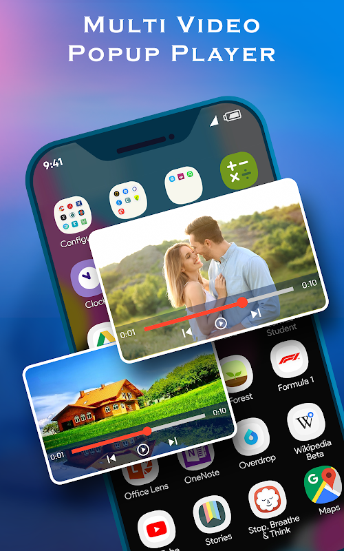 Multi Video Popup Player is a smart application which is play videos with a single floating point. Application allows users to adjust videos on popup screen with view video list, So change whenever you want to change video clip from the list. Play videos on your mobile screen with float point with change view to next or back videos. Play popup multiple videos on a single float screen with your choice.