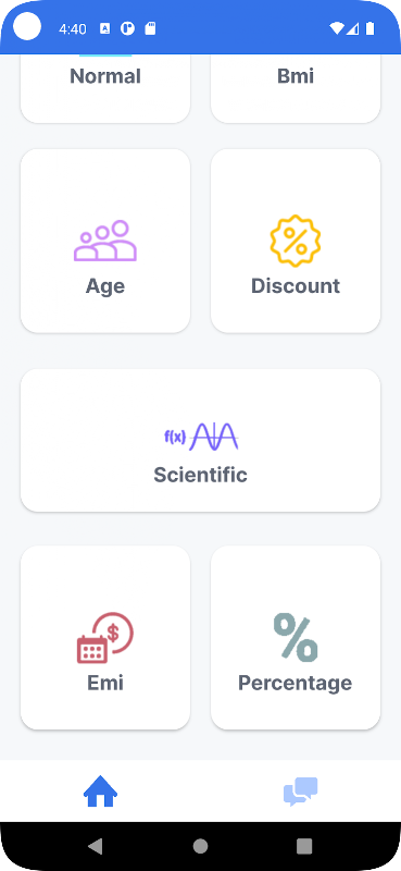 オールインワンの電卓アプリです。 Multiple Calculator では、5 つ以上の異なる関数を計算できます。 BMI、年齢、割引、Emi などのカテゴリが含まれます。