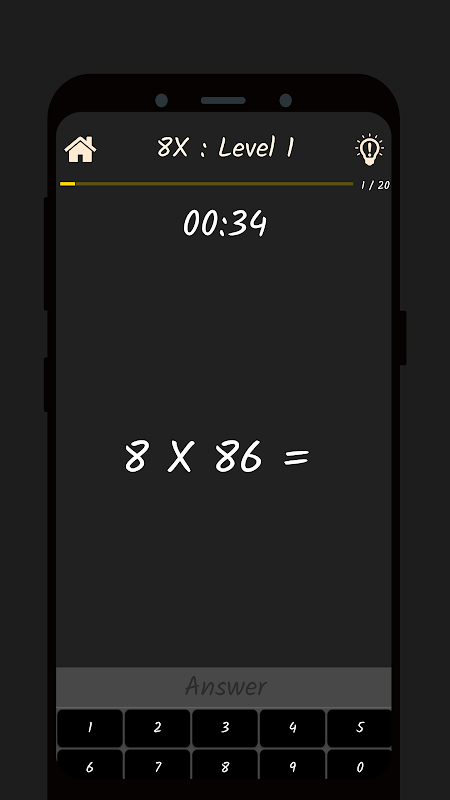 It has unlimited levels, and once you completed with the presented question, the app will automatically take you to the next level. Currently, most of the questions are based on multiplication, but we'll add several types of problems.