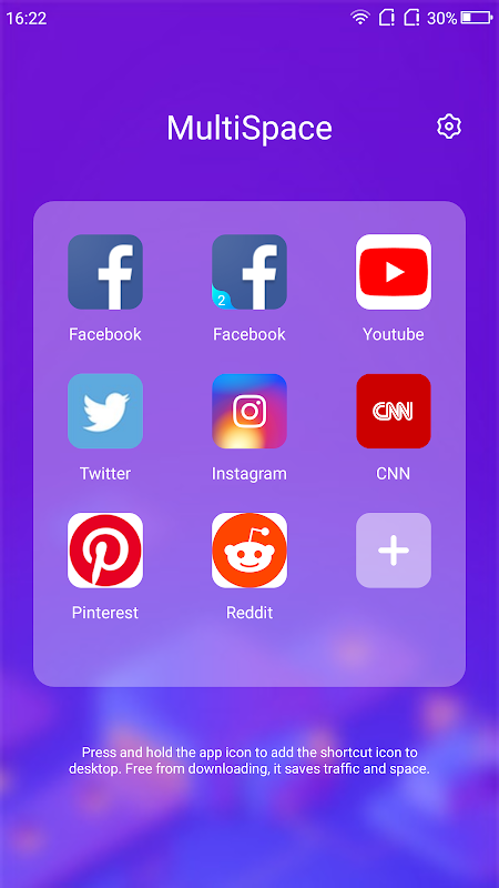If you think you always need to open MultiSpace before you can use apps like Facebook. You can also generate Facebook and other app shortcut to the desktop, more convenient to use.