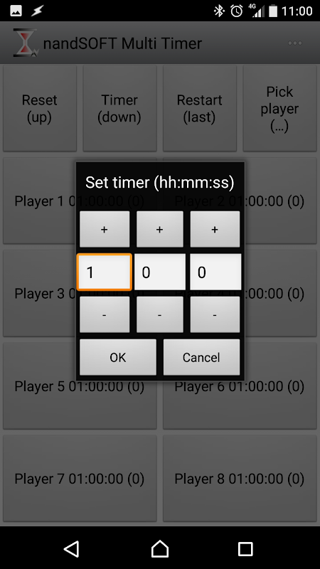 ボタンを長押しすると、プレイヤーの名前、色、タイマーを編集できます。