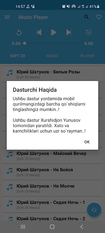 Ushbu dastur yordamida barcha turdagi Audio fayllarni mobil qurilmangizda tinglashingiz mumkin ..!