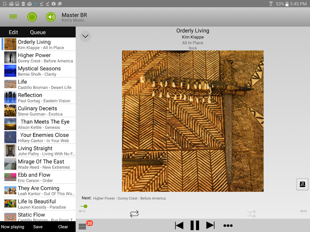 - 表示は、現在の制御/表示されている部屋のための芸術とメタデータ(曲名、アーティスト名など)をカバーしています。