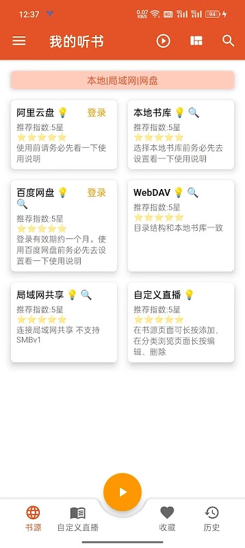 3. 添加一个新的阿里云盘源,使用官方正式的公开接口,支持播放视频和大部分音频,并且支持资源库和备份盘切换。需要播放wma的请使用老的阿里云盘源。
